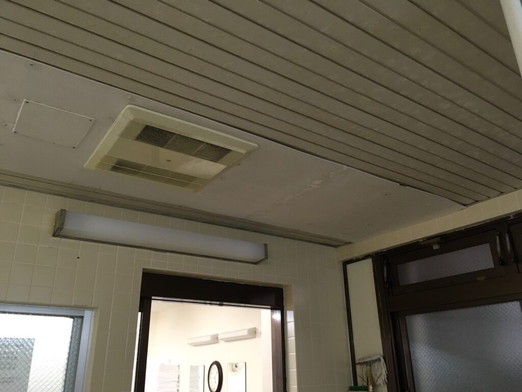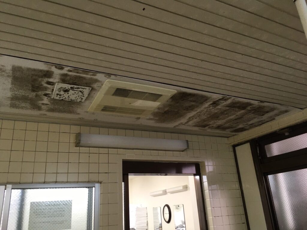 宮城県仙台市青葉区の共用水回りスペースの天井一面に広がった黒カビの除去作業